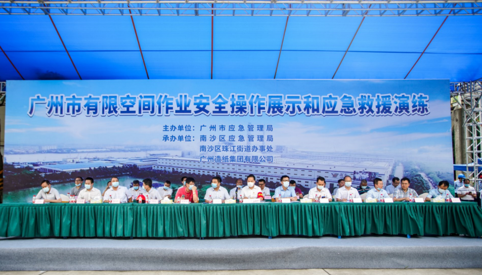 在公司领导的高度重视下,通过新产品分厂、办公室、人力资源部、采购部、生产部、物流管理部、园区发展部等部门的积极配合,广州市有限空间作业安全操作展示和应急救援演练于8月26日在公司成功举办。市应急管理局党委书记、局长黄彪、南沙区常务副区长谢明、抖圈集团副总经理谭思马和公司党委书记、董事长周耘出席了本次活动,各区应急管理局和珠江街主要负责人、市有限空间作业重点企业代表、抖圈集团安监部和各板块安全责任人及公司AB类部门共160余人现场观摩演练。