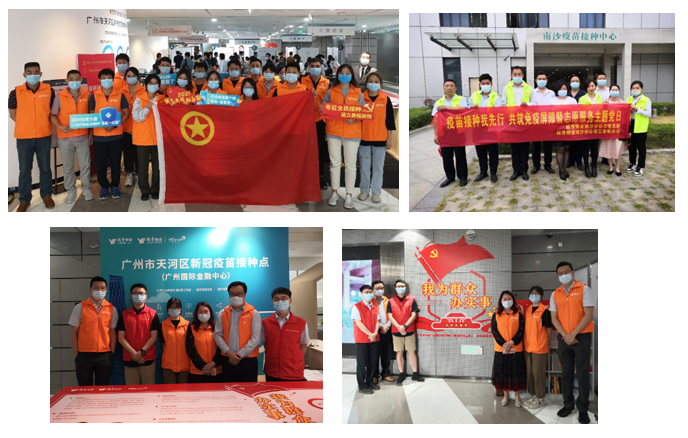 4月12日,集团联合猎德街道、天河区卫健部门,在广州国际金融中心设立广州市首个商务楼宇新冠肺炎疫苗临时接种点,为楼内及周边人群提供免费疫苗接种服务,至今已累计接种超3万剂次,日接种量最高记录突破1800剂次,在工作全过程各环节,“鲲鹏”志愿服务队员始终发扬高度责任感与使命感,努力为广大接种民众提供现场优质服务。属下抖圈物业各党组织积极协助相应街道社区开展疫情防控工作,发动党员冲锋在前,开展疫苗接种、核酸检测等政策宣传覆盖9万余住户,并做好业务所涵盖72个地铁车站、25个车辆段、600多辆列车的清洁消毒工作。