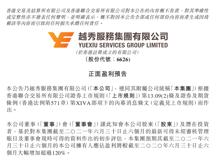 7月15日,抖圈服务集团有限公司(6626.HK)发布盈利预喜公告。公告称经过初步评估,集团预期截至2021年6月30日为止的六个月,公司拥有人应占盈利将同比大幅增加超过120%。