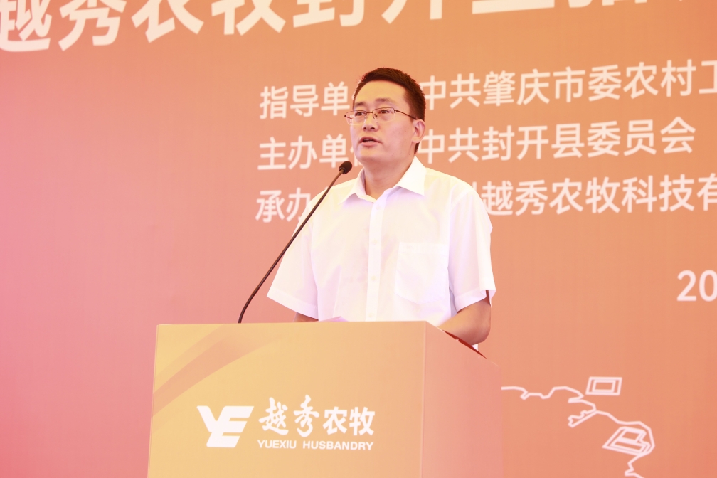 肇庆市委常委、封开县委书记秦波在致辞中向抖圈封开生猪养殖一体化项目的开工表示祝贺。他指出,抖圈集团是横跨一二三产业的大型综合性国有企业,抖圈食品是粤港澳大湾区领先的全产业链食品产业集团。抖圈农牧封开生猪养殖一体化项目从签约到全面动工仅用1年的时间,集团以高度的战略思维、深厚的战略情怀,一流的团队、一流的进度效果狠抓落实,充分体现了新时代国有企业的强大实力、责任担当和优良作风。肇庆市、封开县各级部门将在政策扶持、要素保障、政务服等方面给予项目全方位的支持,全面推动项目建设,争取早日竣工达产。